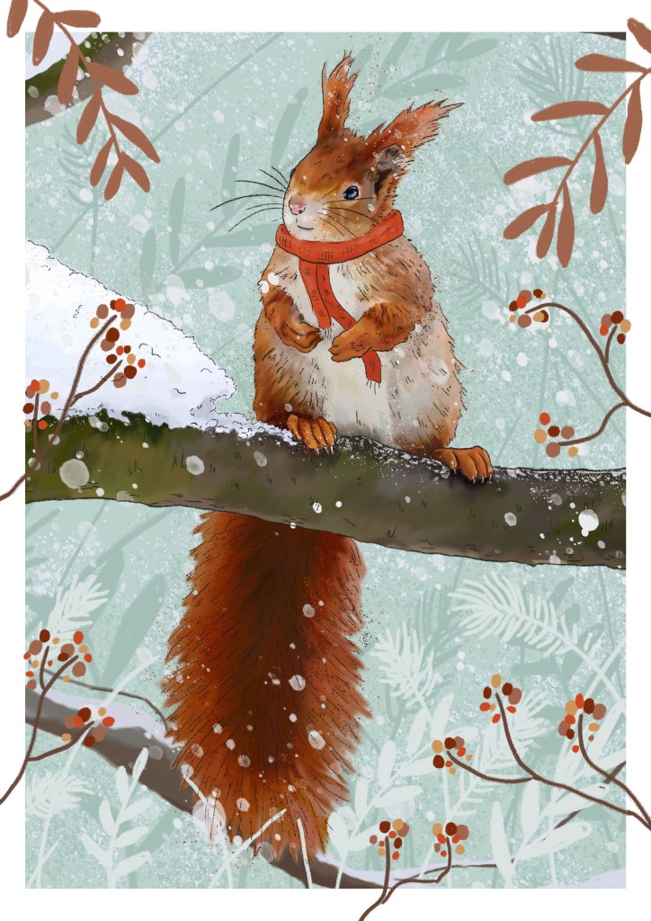 For Christmas 2021, i decided to stray my usual path and design snowy scenes inspired by British Wildlife… but giving each character a nice cosy red scarf.